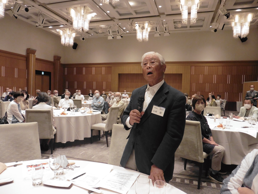 | 御指名を頂きました内田です。私はつい3 カ月前の6月末迄社友会の世話役として経理部を担当しておりました。今年一月の新年互礼会の中締めの挨拶でもご報告をさせて頂きましたが、最近の大阪社友会の運営状況、特にコロナ 感染症の流行期間の現状に付きまして、再度お伝えをさせて頂きます。 | ![]() |