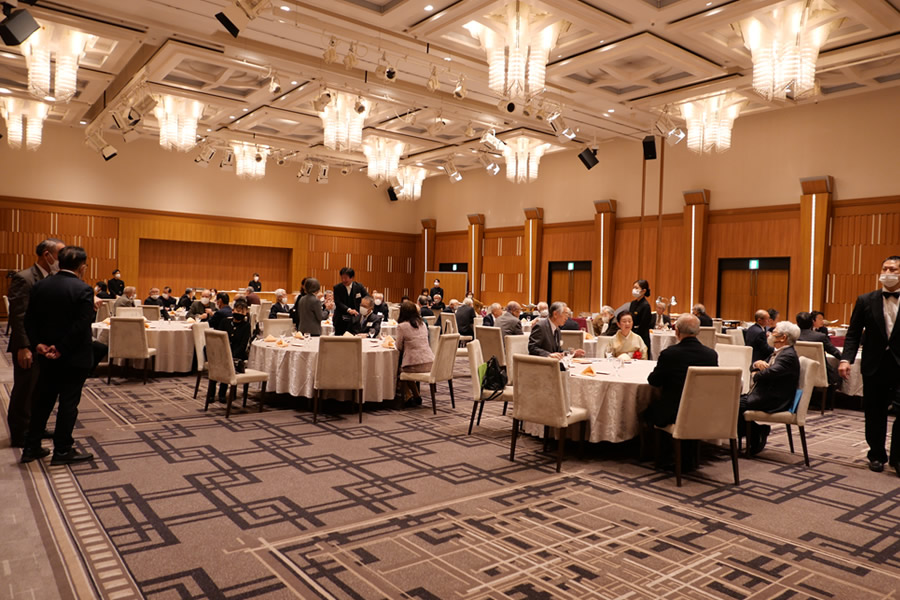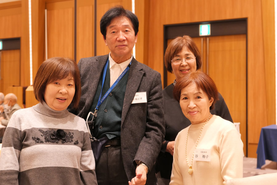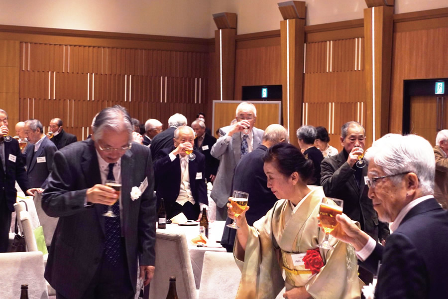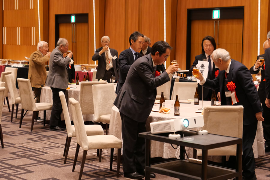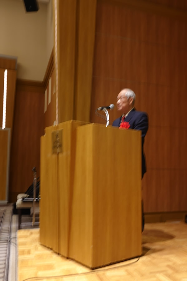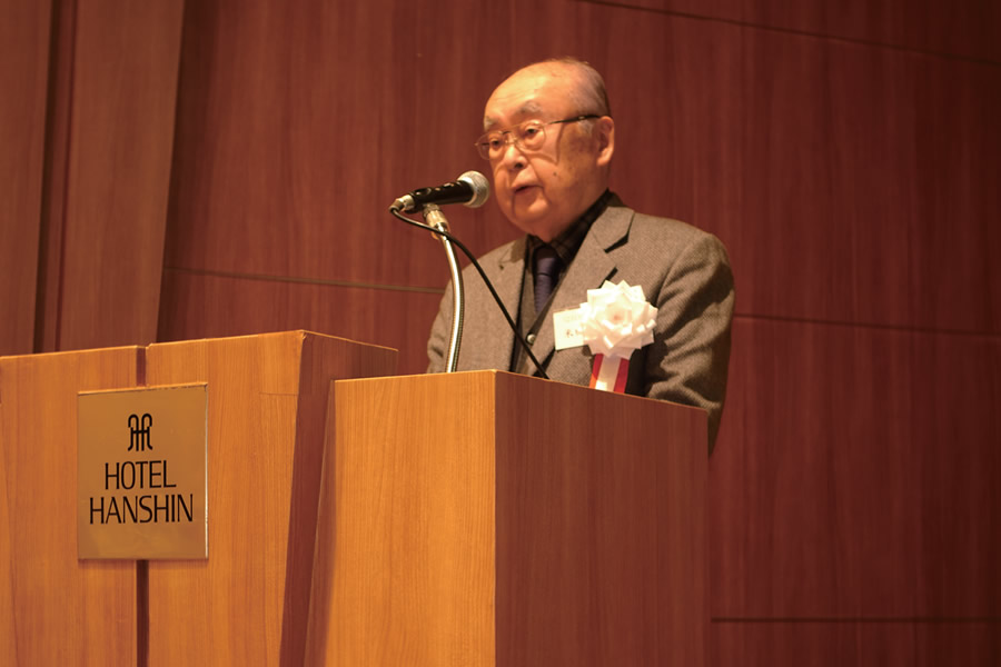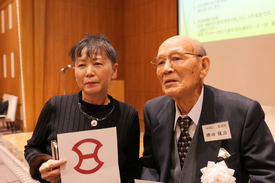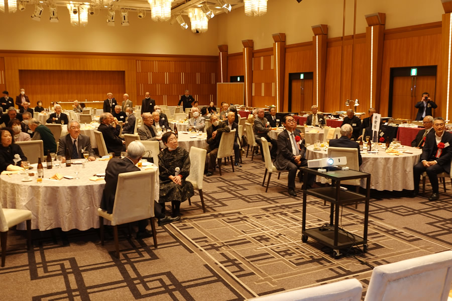 | 本日は、お忙しい中、ご参集いただきまして誠に有難うございます。 先ほど開催いたしました、臨時総会で「4社友会への統合」をご承認いただきまして誠に有難うございます。それでは、これよりニチメン大阪社友会としては最後になります「新年互例会」を開催致します。まずは、新年を寿ぎまして、一言年頭のご挨拶を申し上げます。 | ![]() |