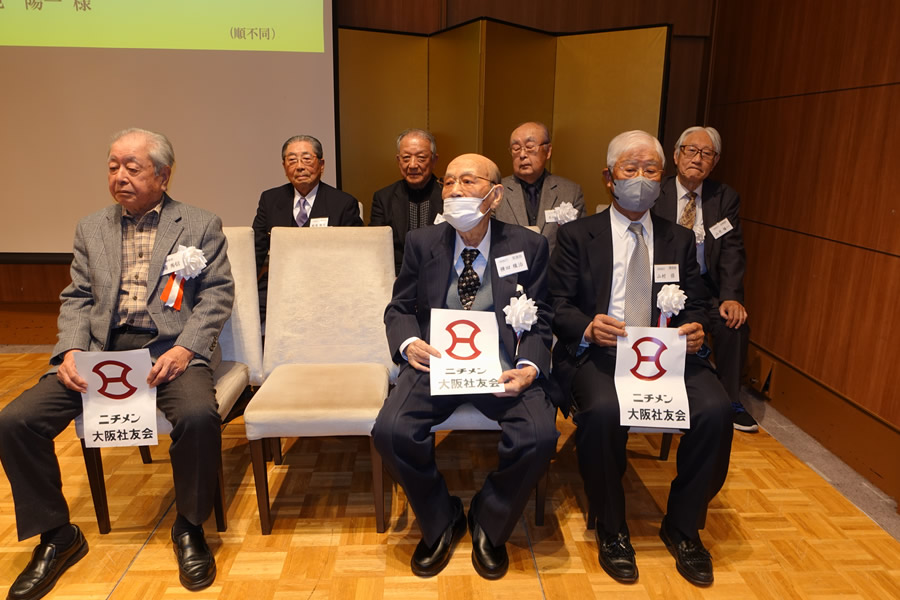| 慶祝者目録贈呈ご挨拶 ニチメン大阪社友会 会長 岡崎 謙二 | |